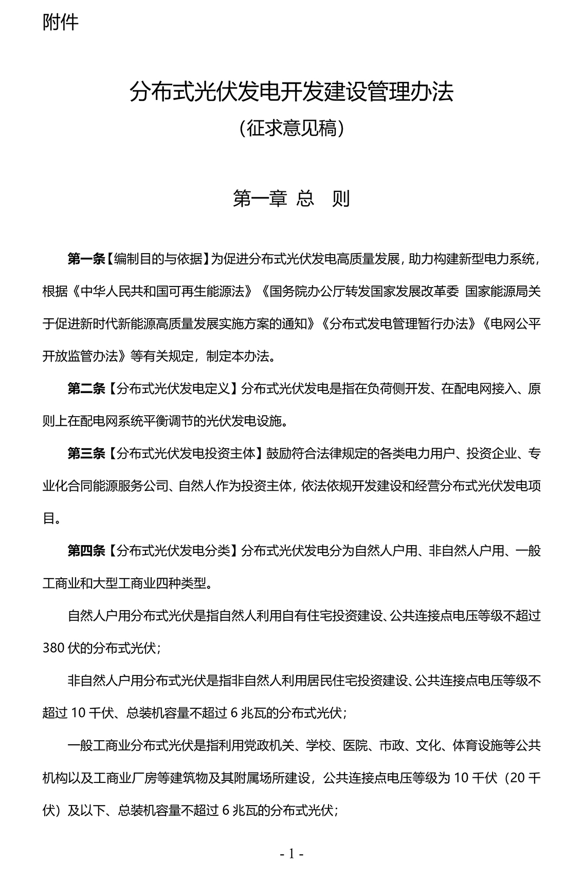 附:分布式光伏发电开发建设管理办法(征求意见稿)